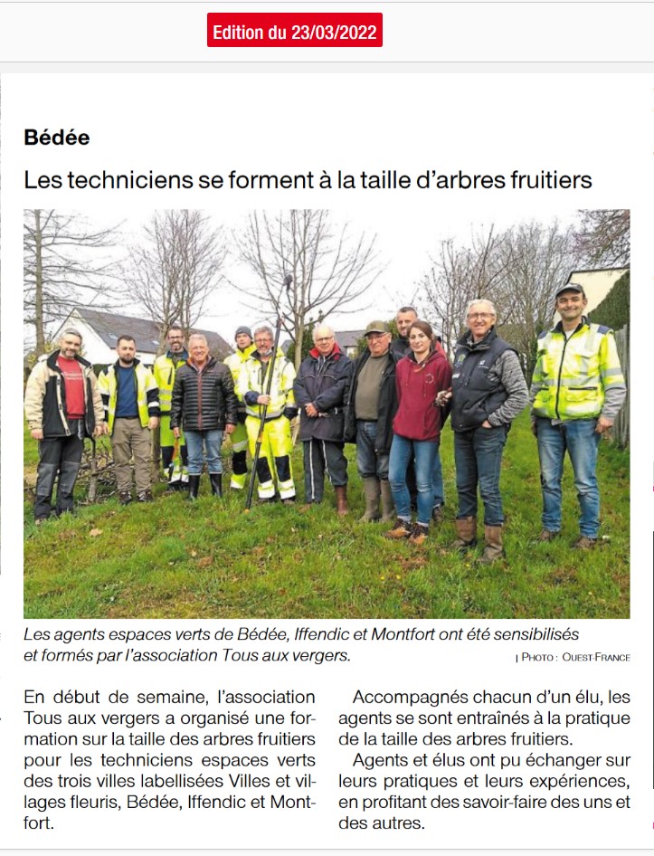 | Les techniciens se forment à la taille d'arbres fruitiers | Bédée | 23 mars 2022 | Ouest France - Pdf - Jpg |